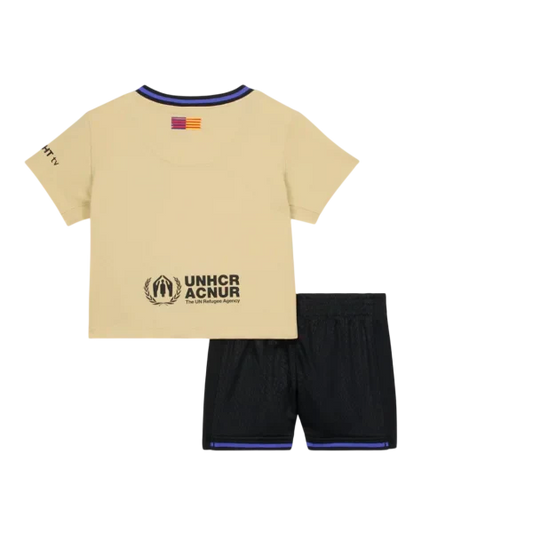 Dziecięcy wyjazdowy zestaw piłkarski Barcelona (koszulka + spodenki) 2025/26